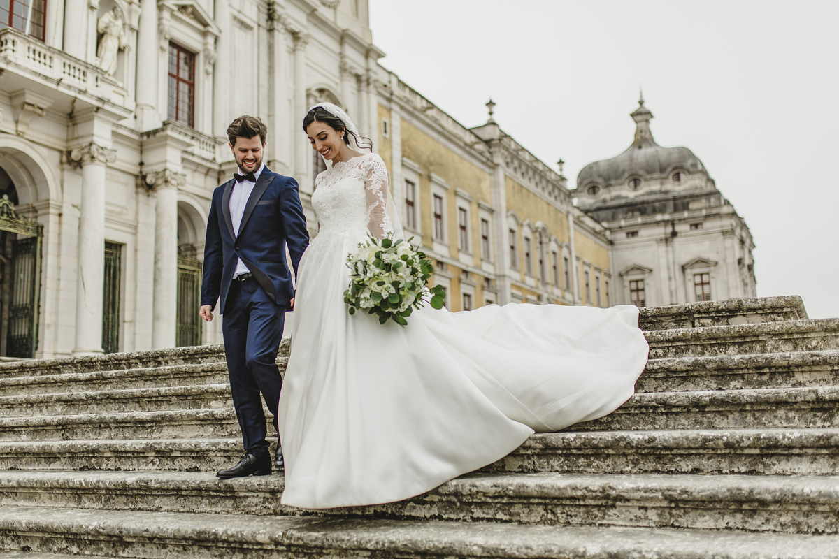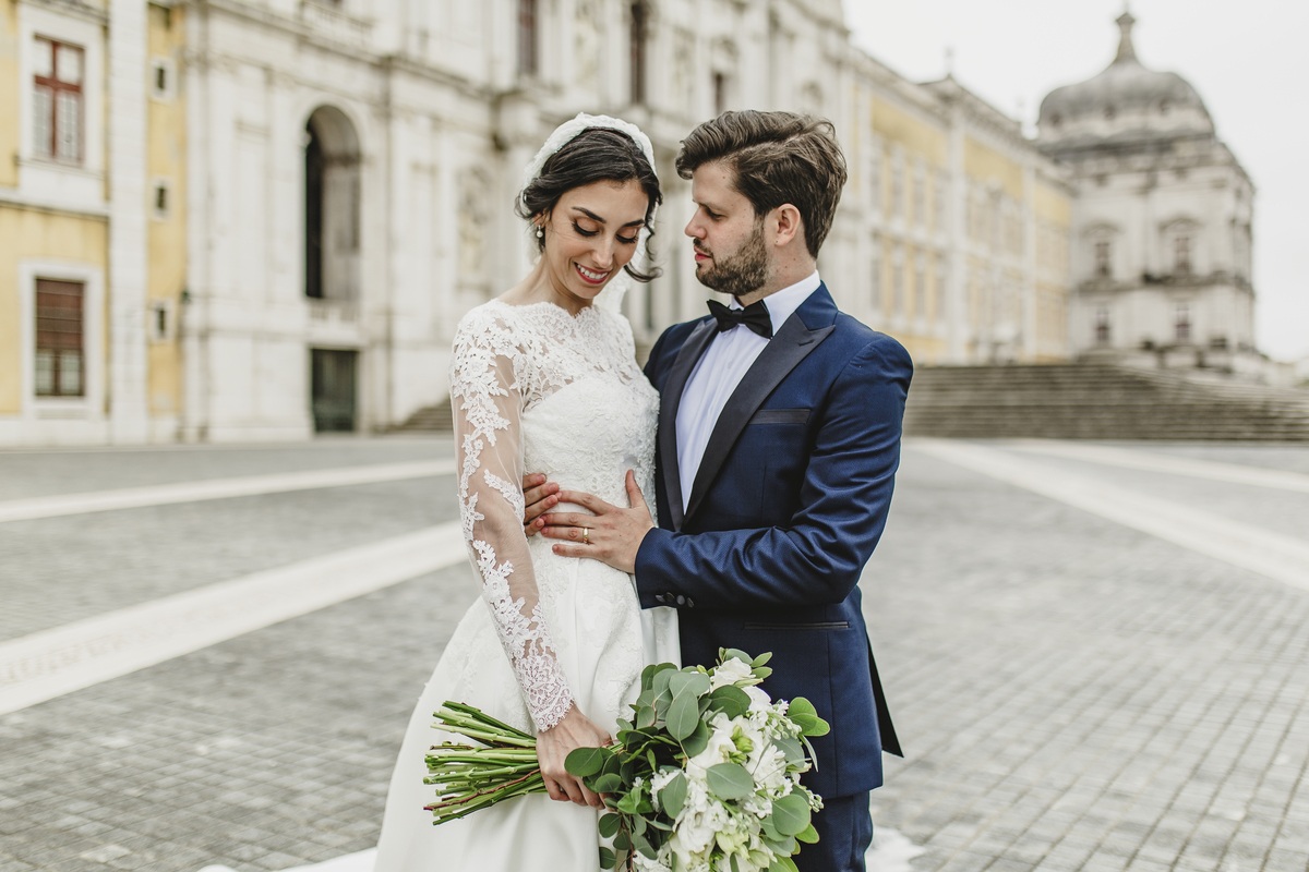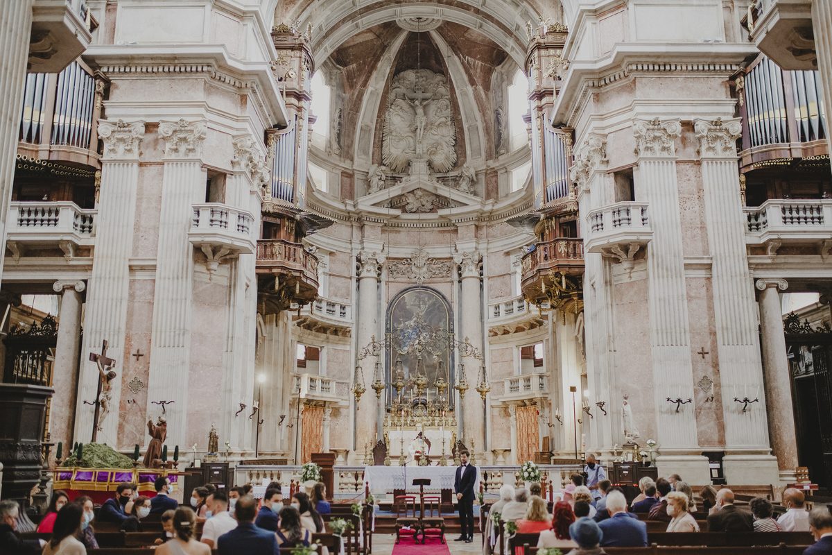 No majestoso Convento de Mafra, André e Sílvia uniram seus destinos em matrimónio, em uma cerimónia repleta de pompa e circunstância. Com a grandiosidade do local como pano de fundo, testemunhas encantadas prestigiaram a ocasião solene e especial.
