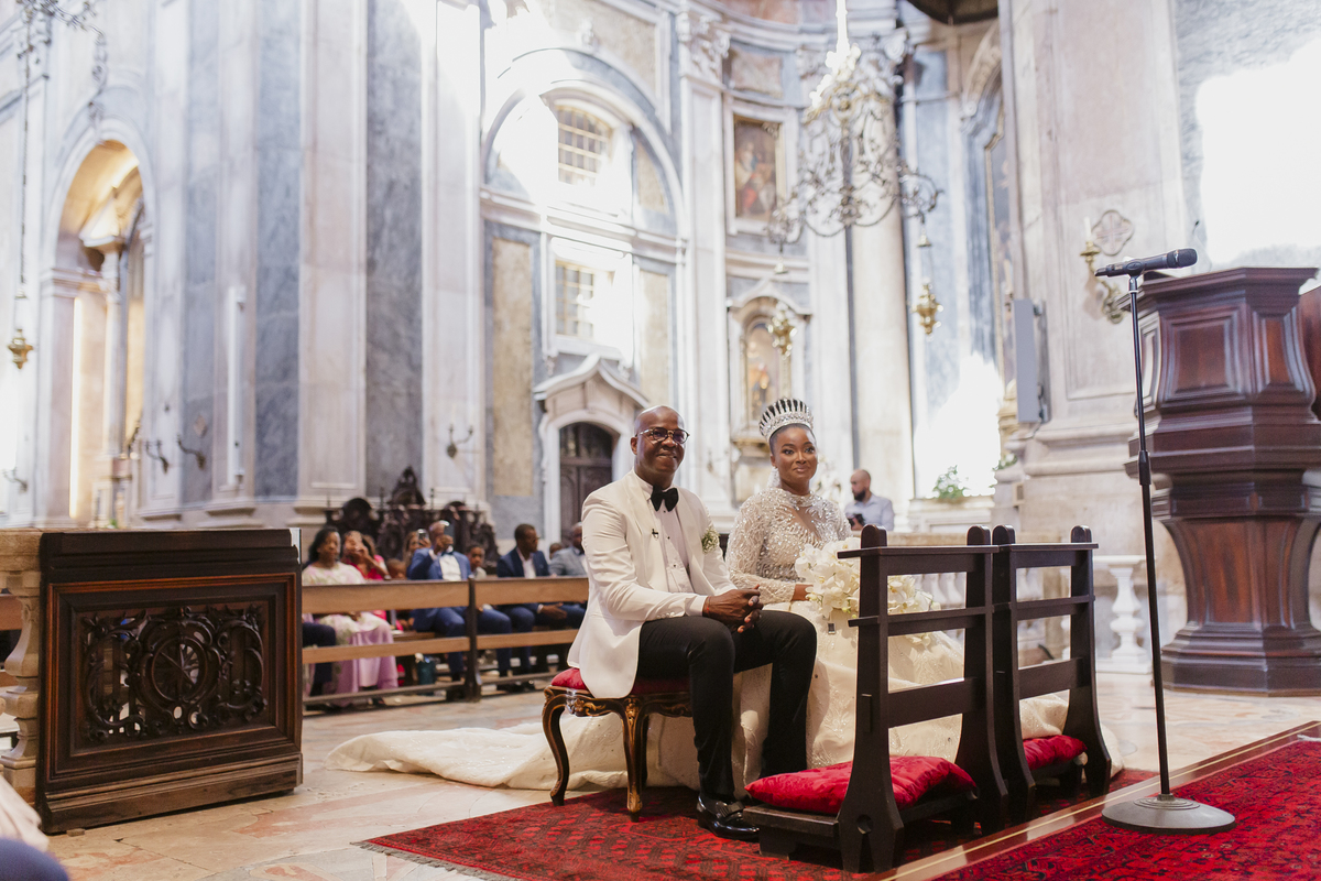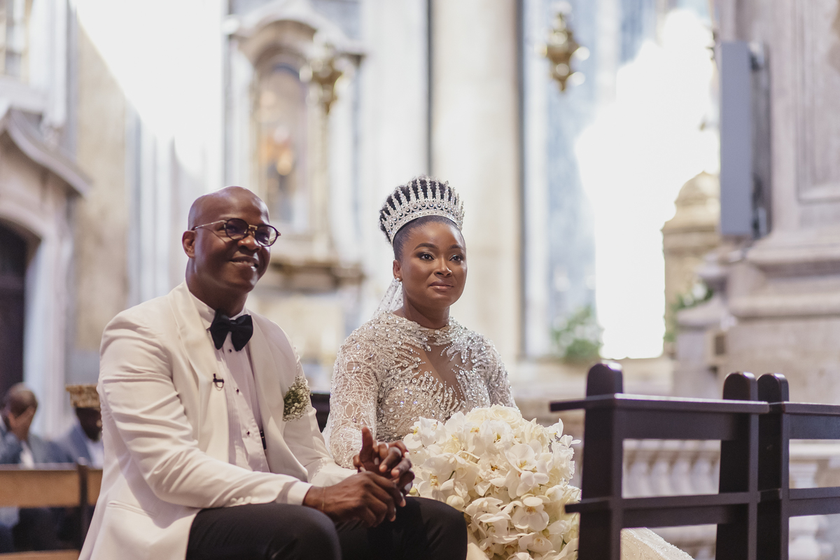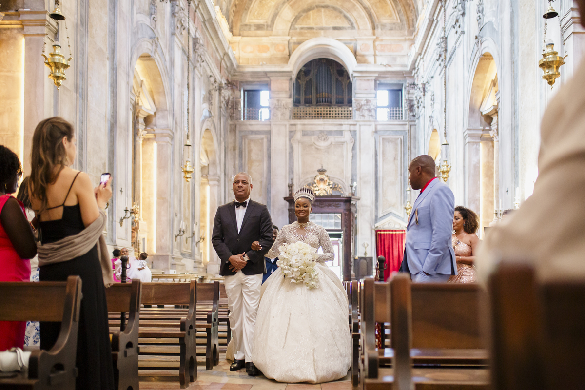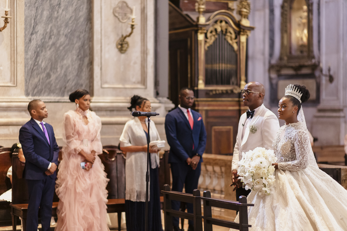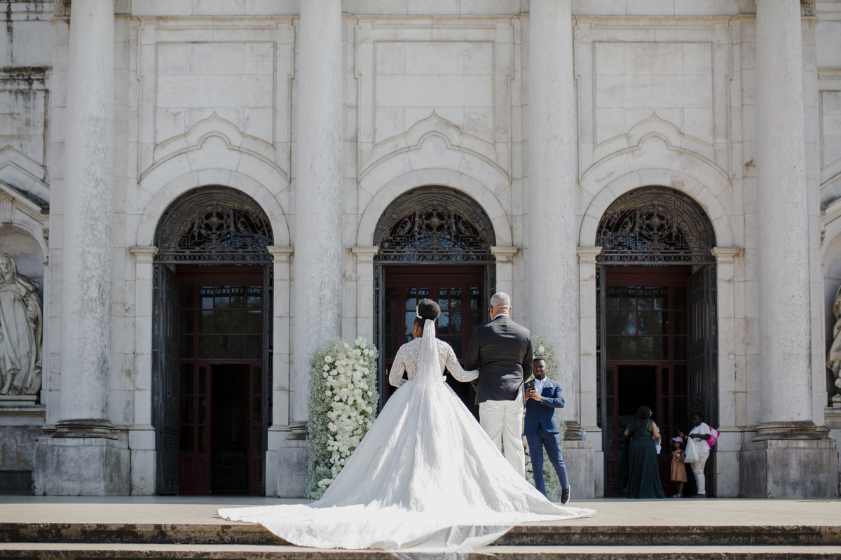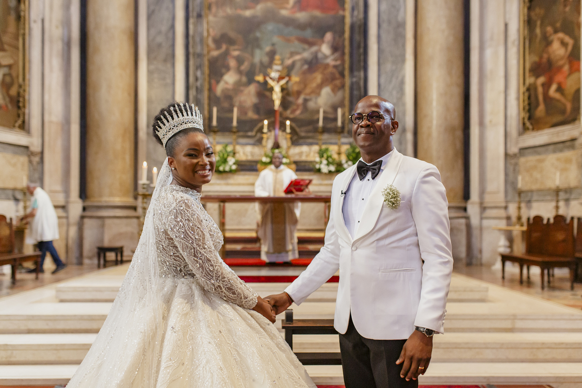 No dia tão esperado, Aulinda e Egídio uniram-se em matrimónio na majestosa Basílica da Estrela. Aulinda deslumbrou todos com seu vestido único, um modelo fantástico e luxuoso que realçava sua beleza ímpar.