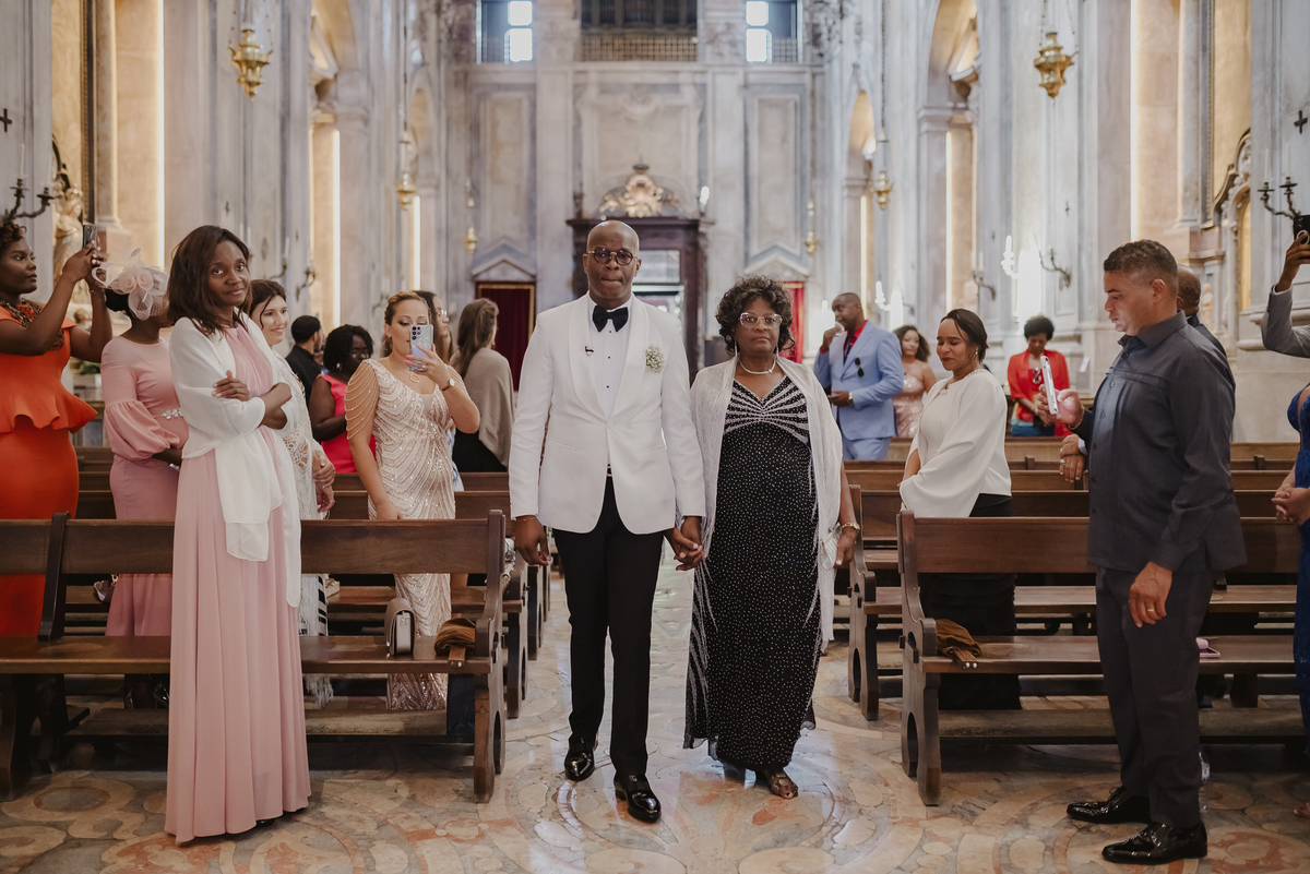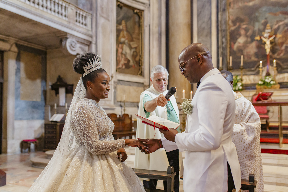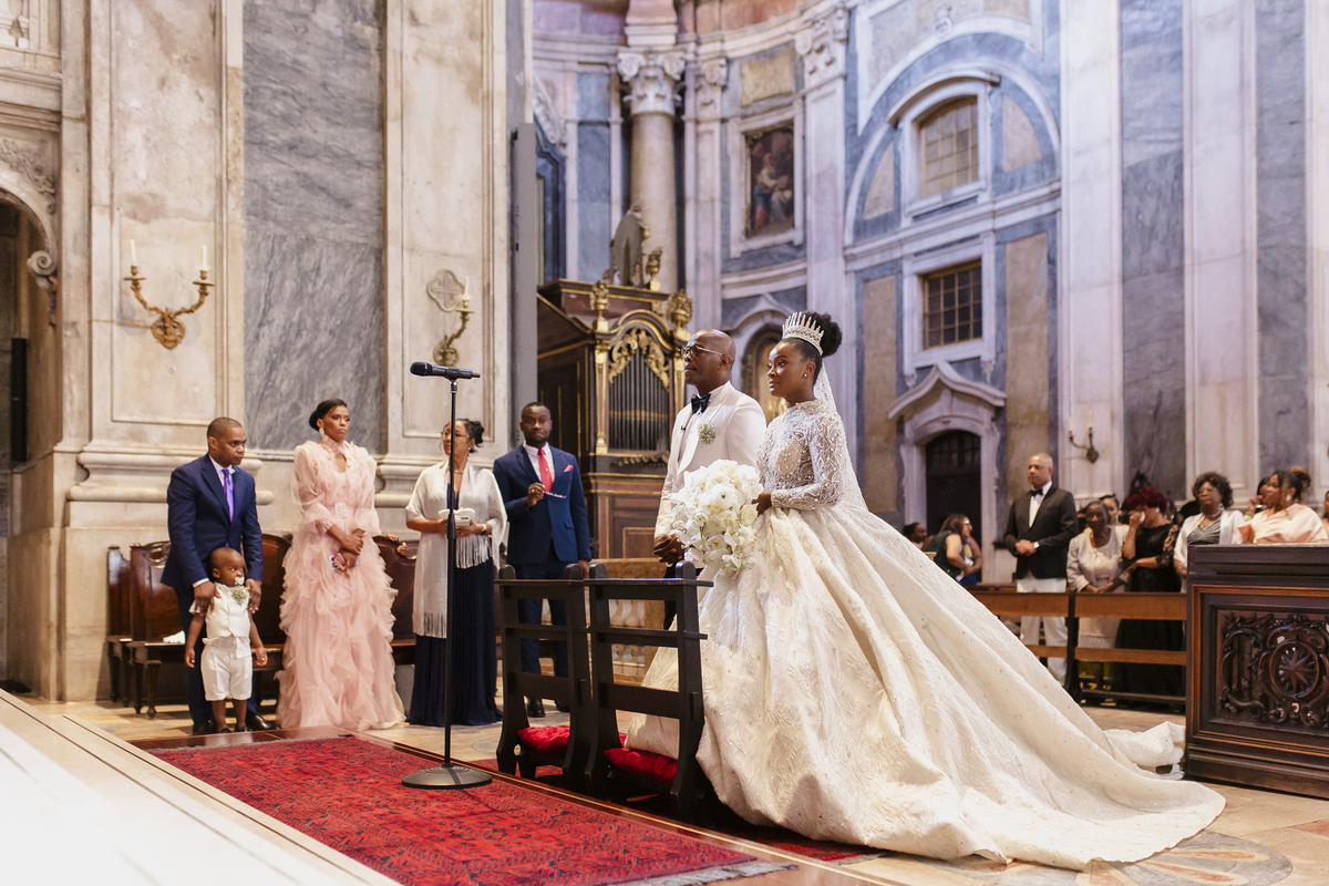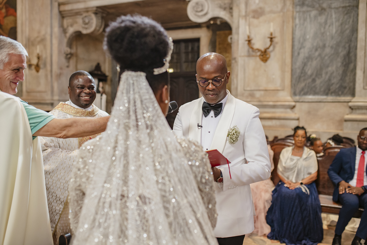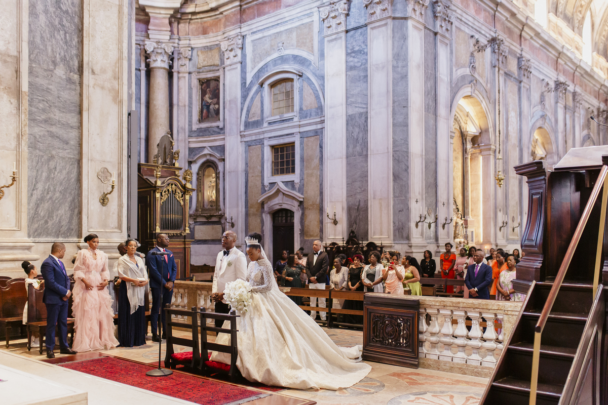 No dia tão esperado, Aulinda e Egídio uniram-se em matrimónio na majestosa Basílica da Estrela. Aulinda deslumbrou todos com seu vestido único, um modelo fantástico e luxuoso que realçava sua beleza ímpar.