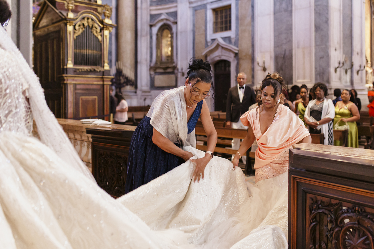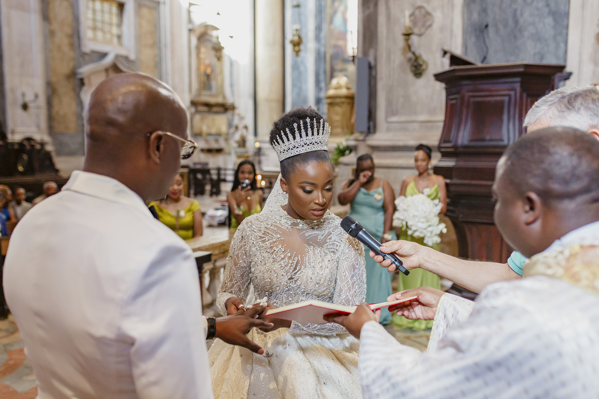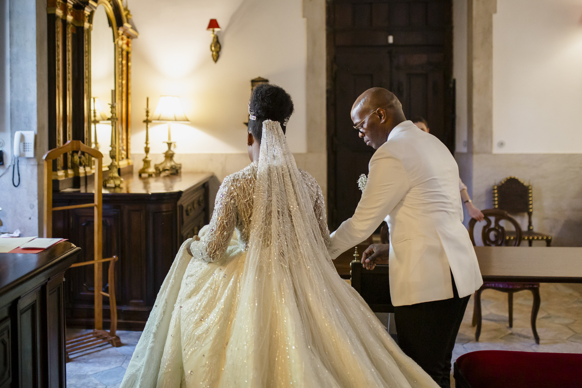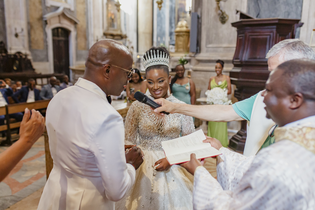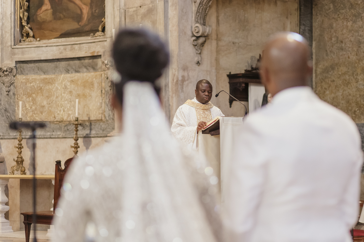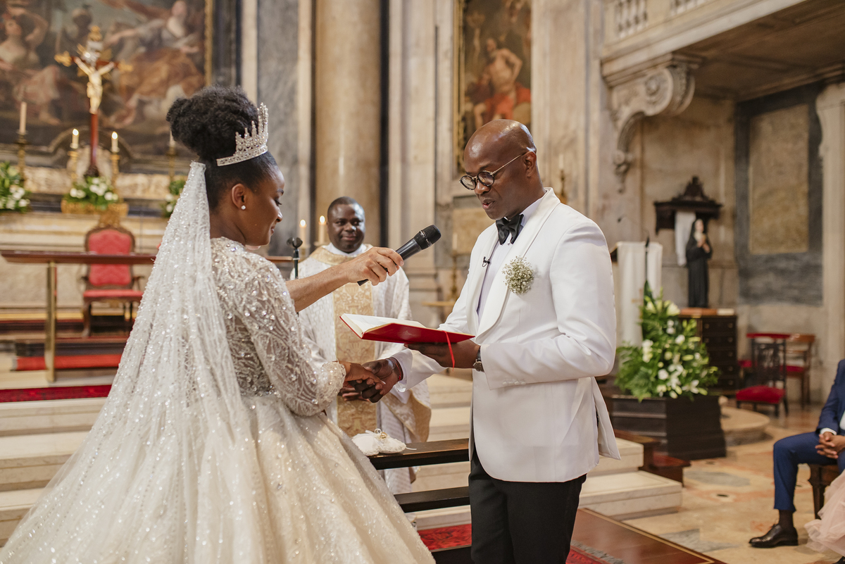 No dia tão esperado, Aulinda e Egídio uniram-se em matrimónio na majestosa Basílica da Estrela. Aulinda deslumbrou todos com seu vestido único, um modelo fantástico e luxuoso que realçava sua beleza ímpar.