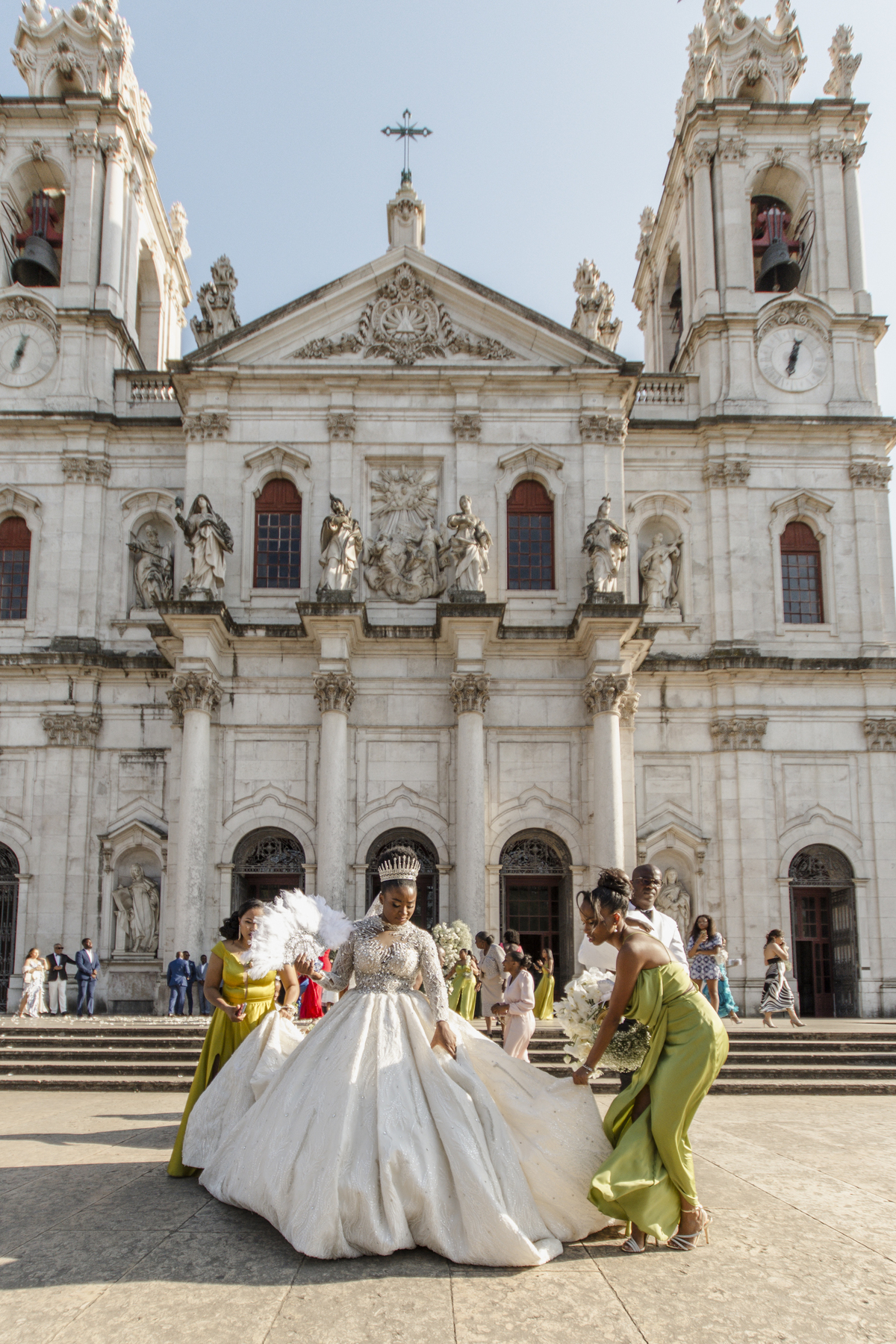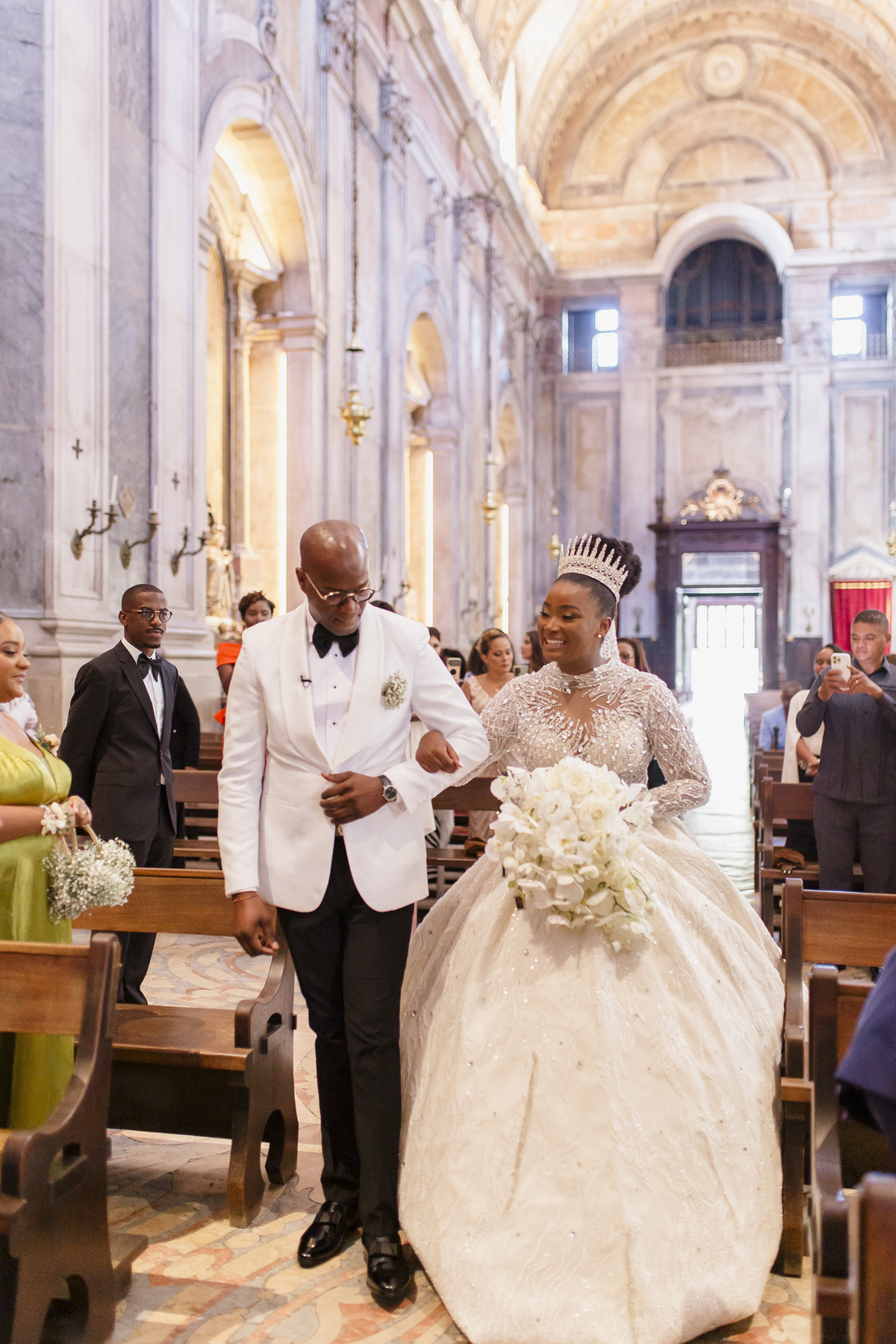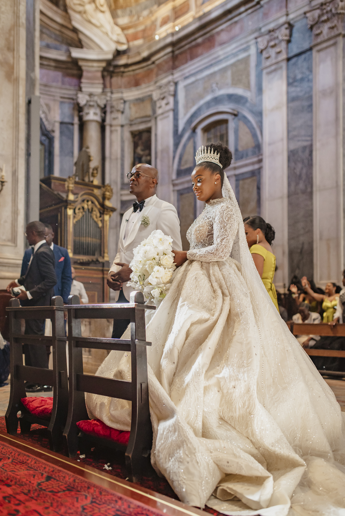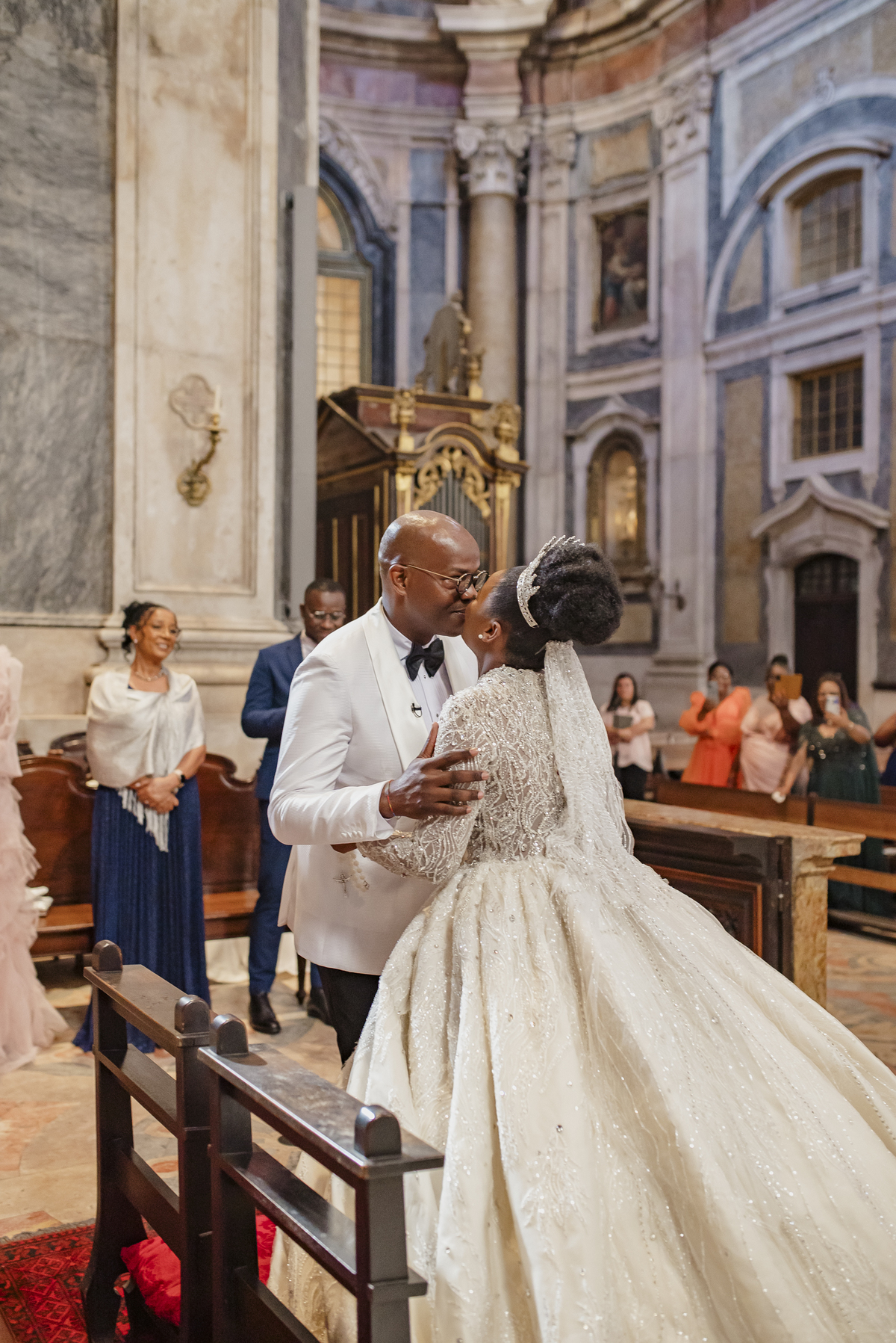 No dia tão esperado, Aulinda e Egídio uniram-se em matrimónio na majestosa Basílica da Estrela. Aulinda deslumbrou todos com seu vestido único, um modelo fantástico e luxuoso que realçava sua beleza ímpar.