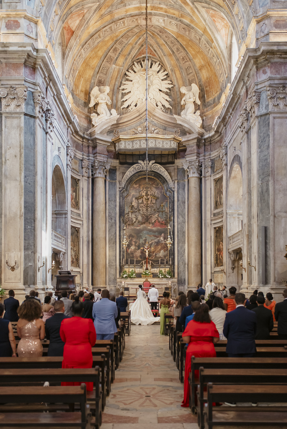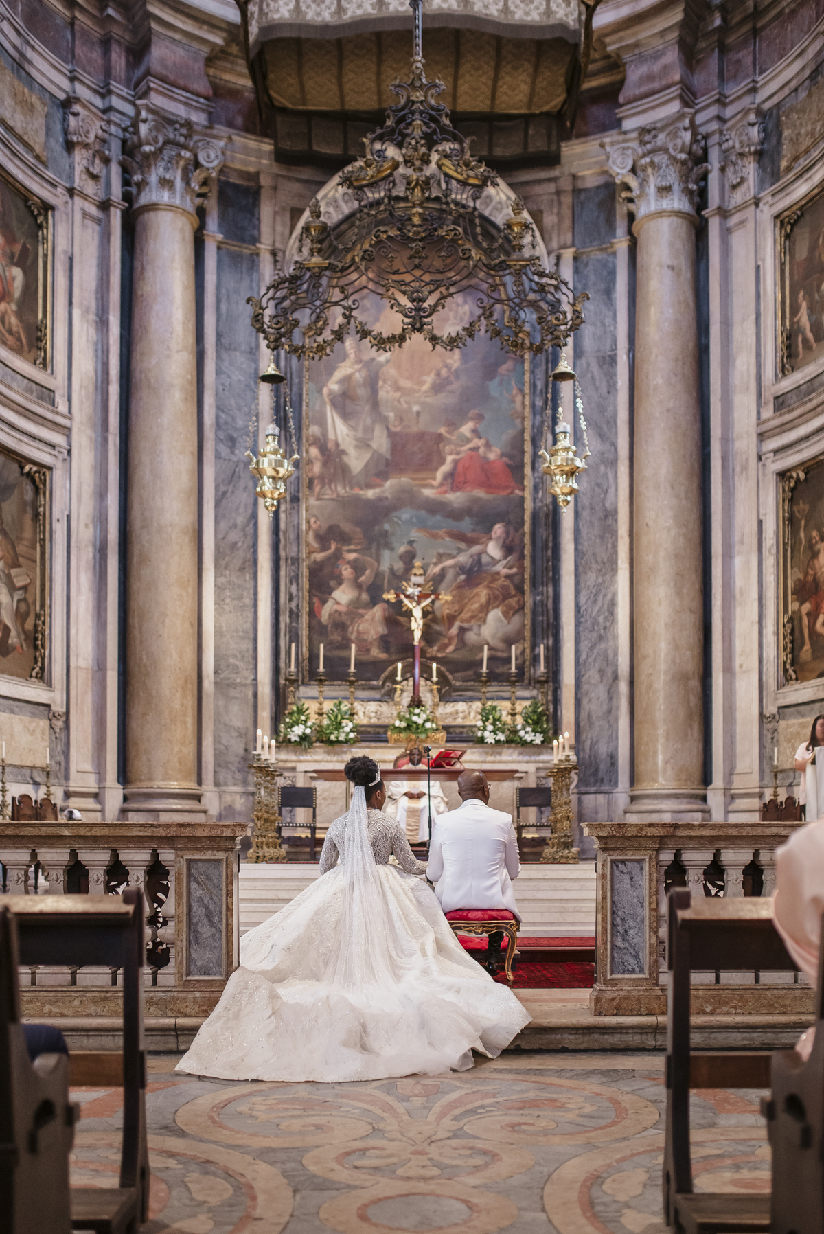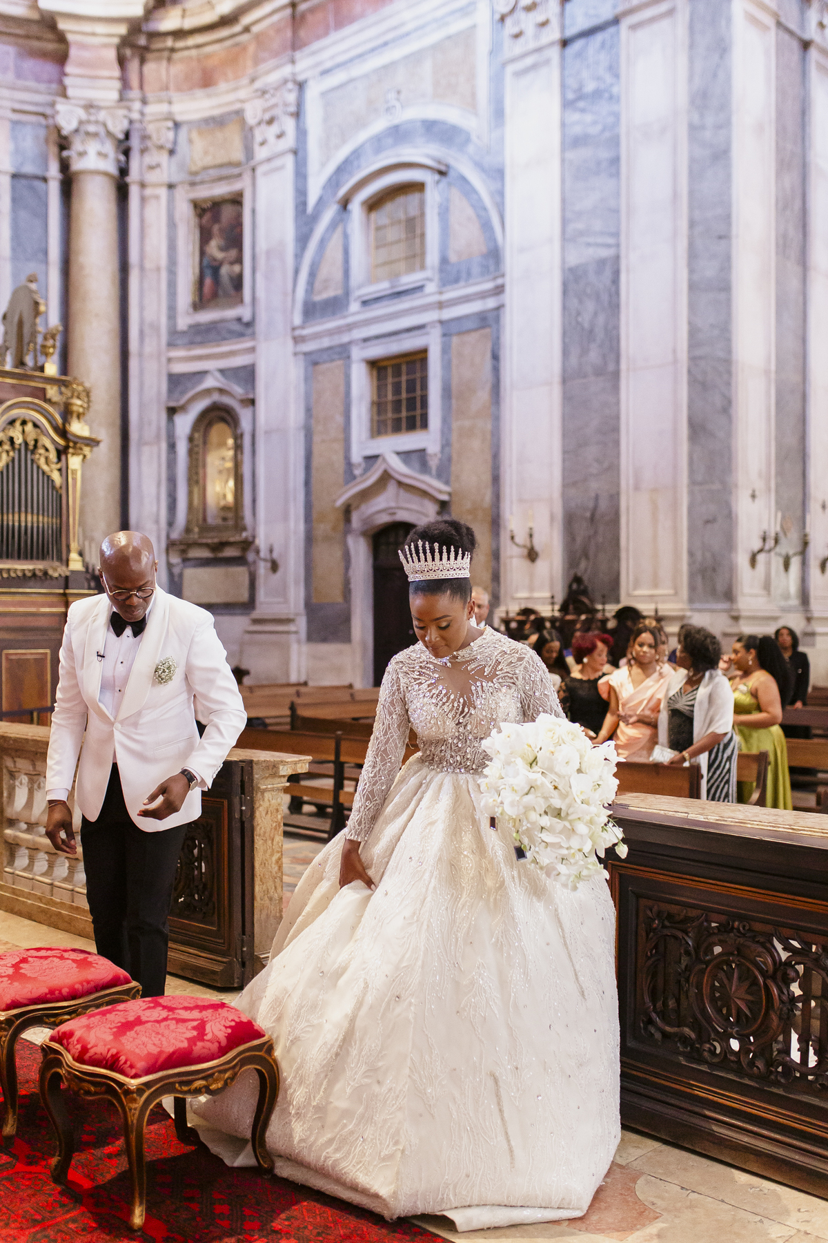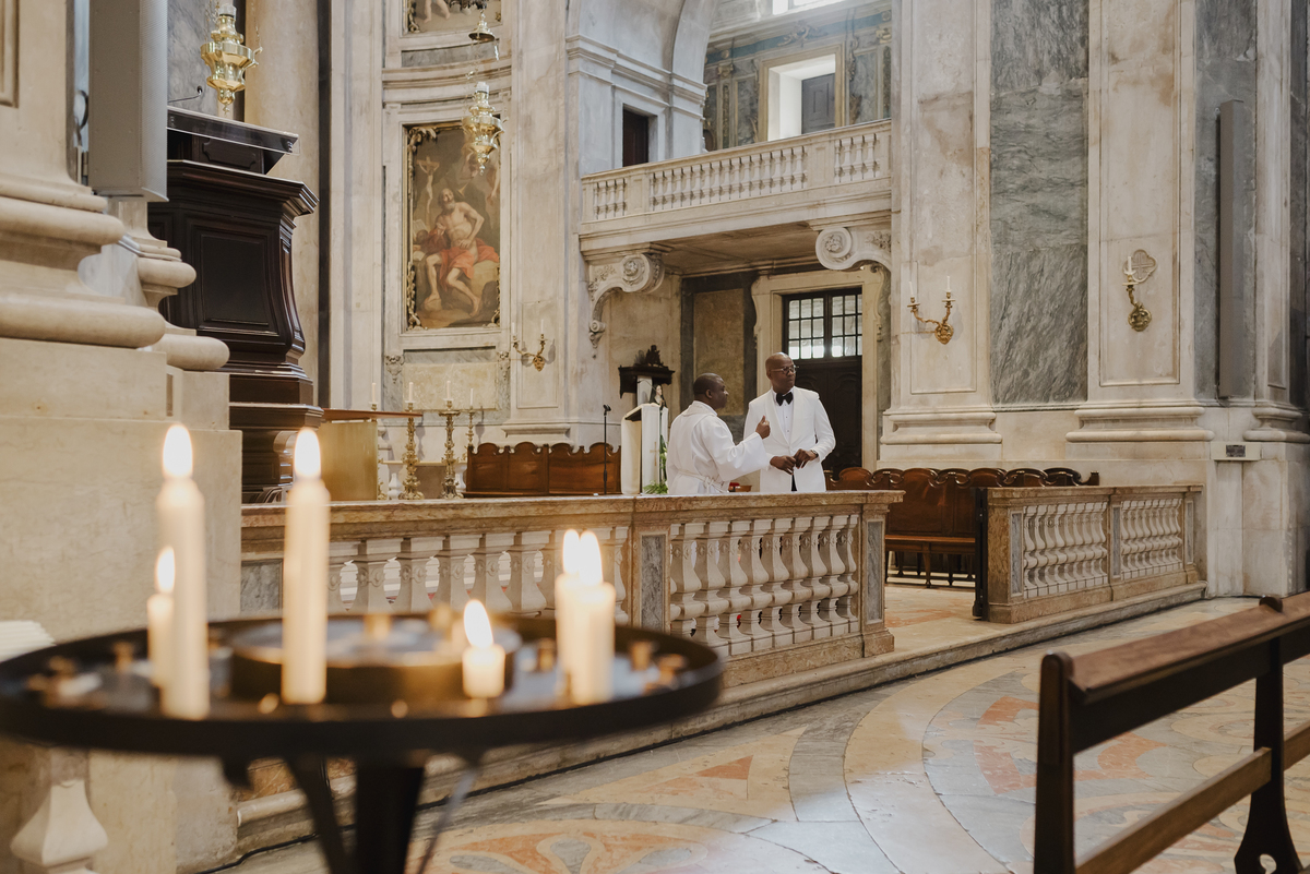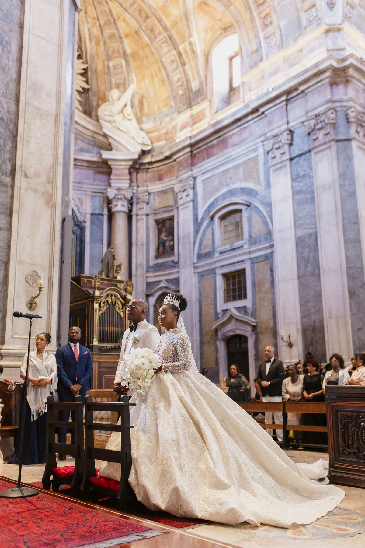 No dia tão esperado, Aulinda e Egídio uniram-se em matrimónio na majestosa Basílica da Estrela. Aulinda deslumbrou todos com seu vestido único, um modelo fantástico e luxuoso que realçava sua beleza ímpar.