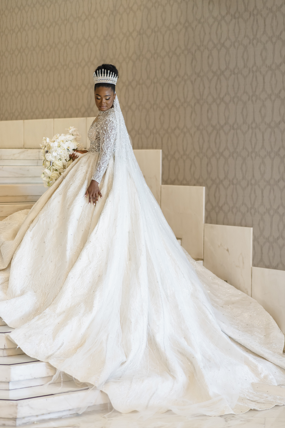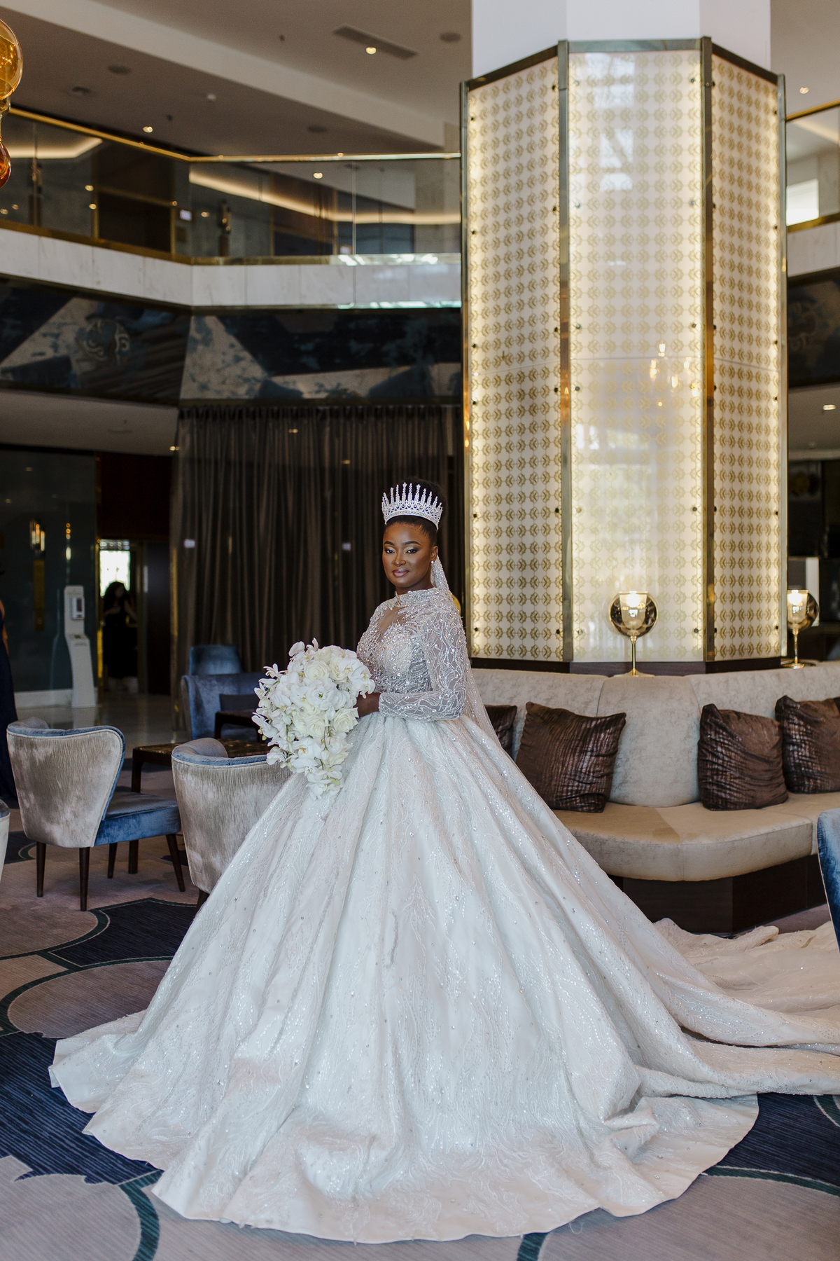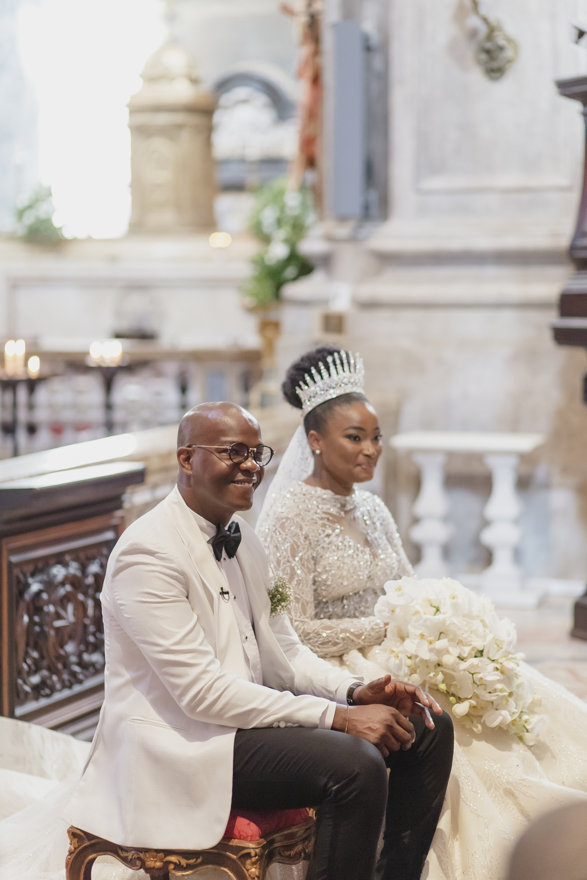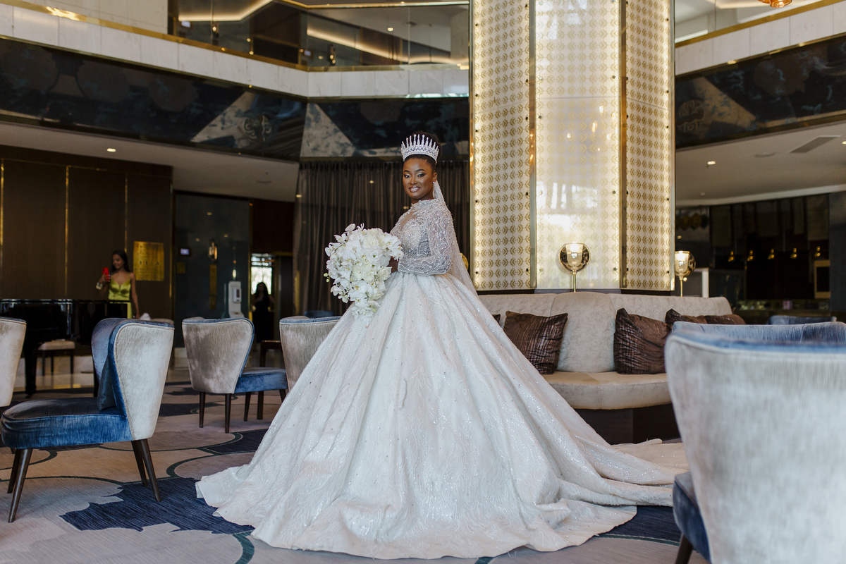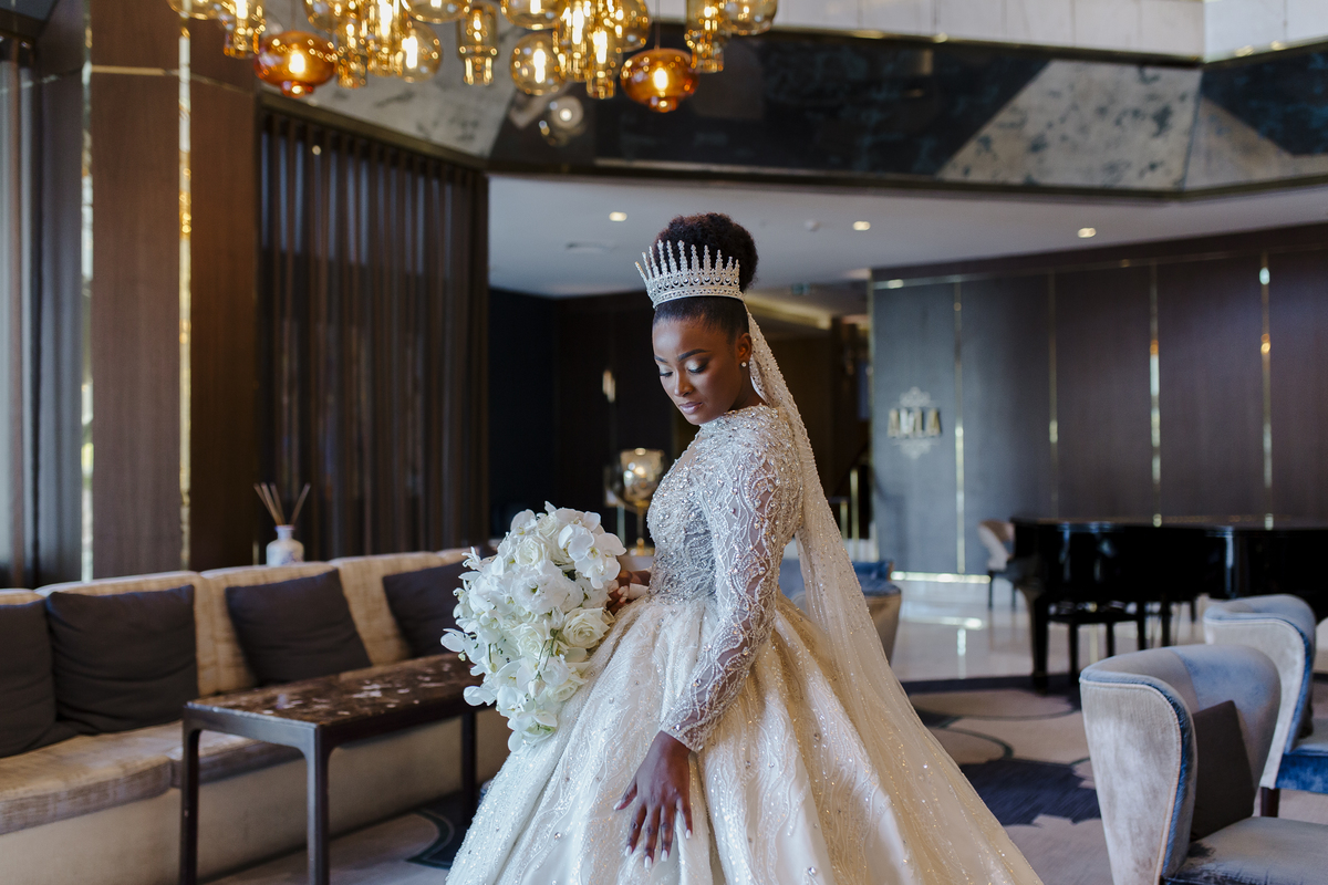 No dia tão esperado, Aulinda e Egídio uniram-se em matrimónio na majestosa Basílica da Estrela. Aulinda deslumbrou todos com seu vestido único, um modelo fantástico e luxuoso que realçava sua beleza ímpar.