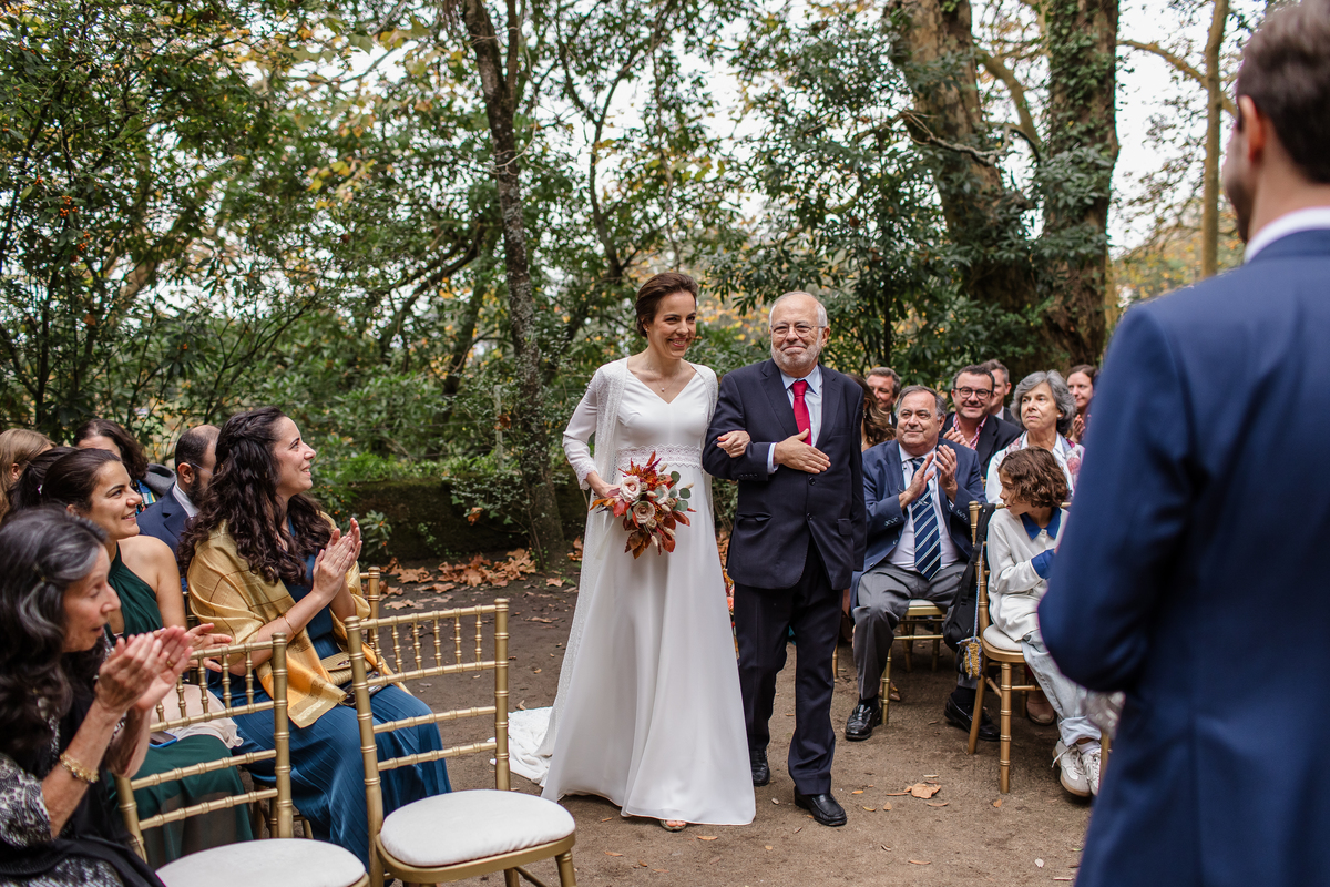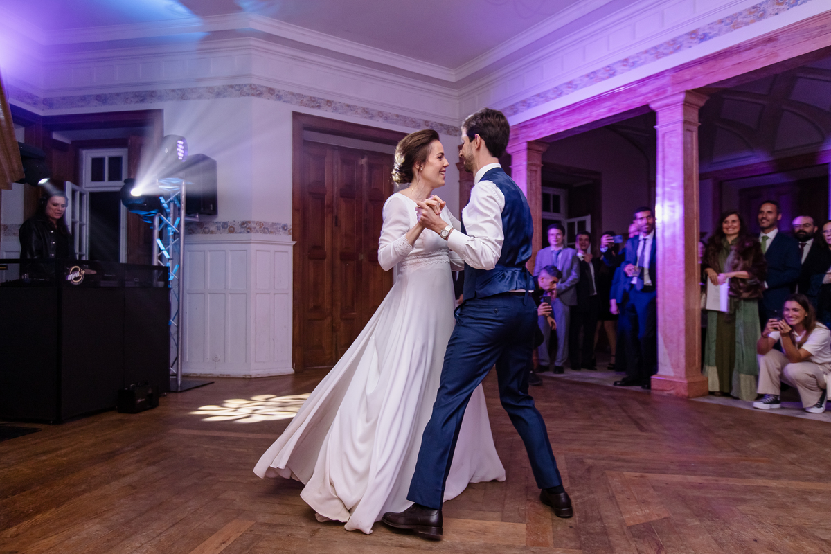A envolvência misteriosa e melancólica da região de Sintra contribuiu para transformar a Casa dos Penedos em um refúgio ideal para esta cerimónia repleta de charme e bom gosto. A atmosfera única deste local histórico evoca romances e histórias vividas no passado, adicionando um toque de magia e nostalgia ao casamento de Mariana e Tiago.