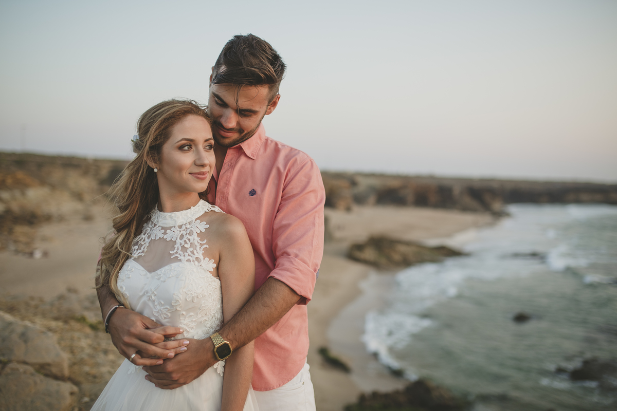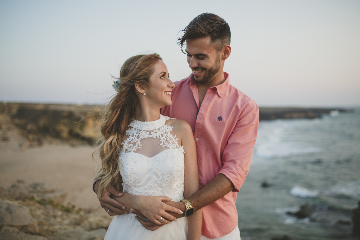 Contemplavam a grandiosidade do mar e o sol foi se entregando à noite e assim, Sabrina e Alex despediram-se do dia, guardando consigo memórias inesquecíveis da nossa sessão.